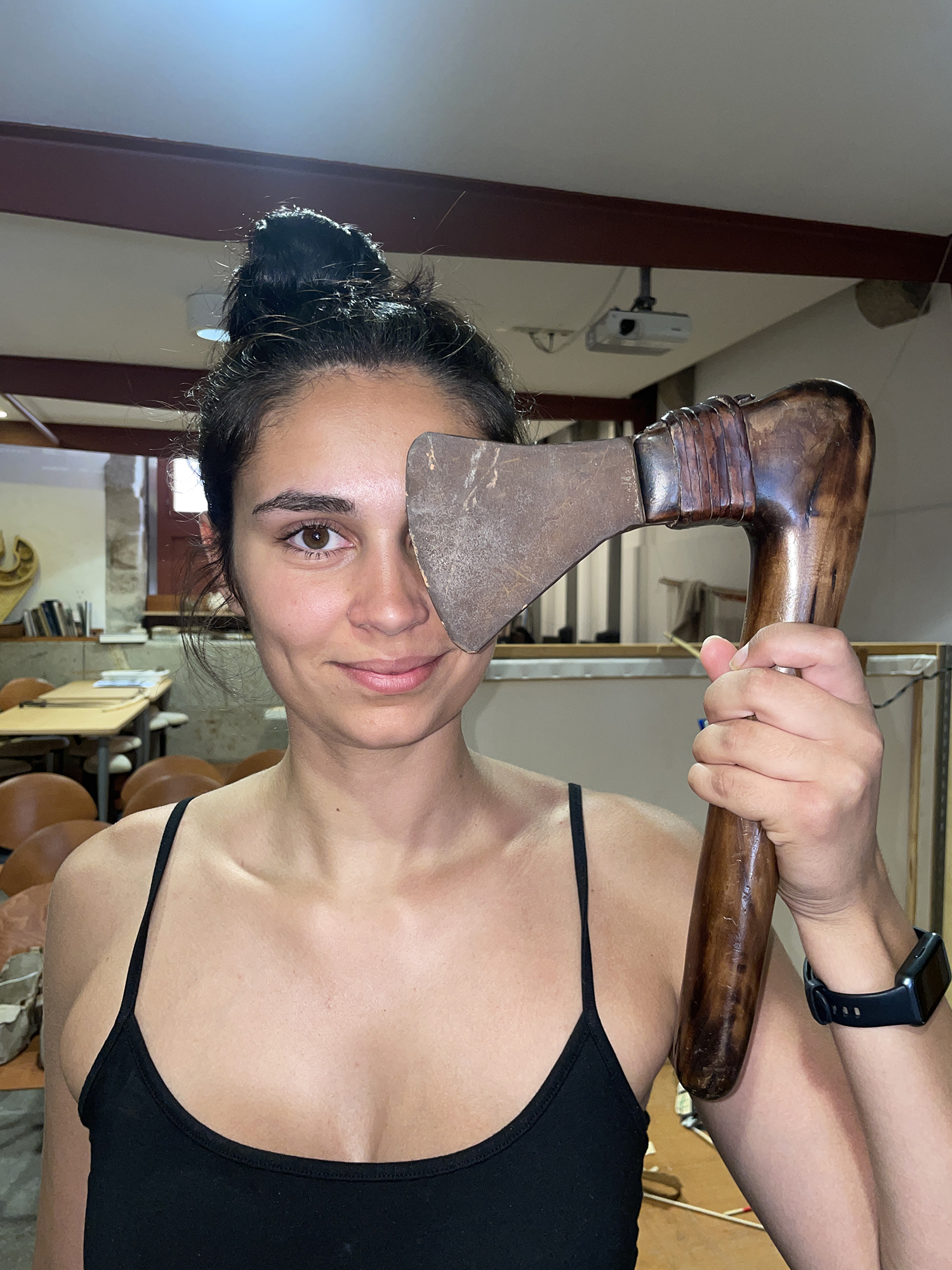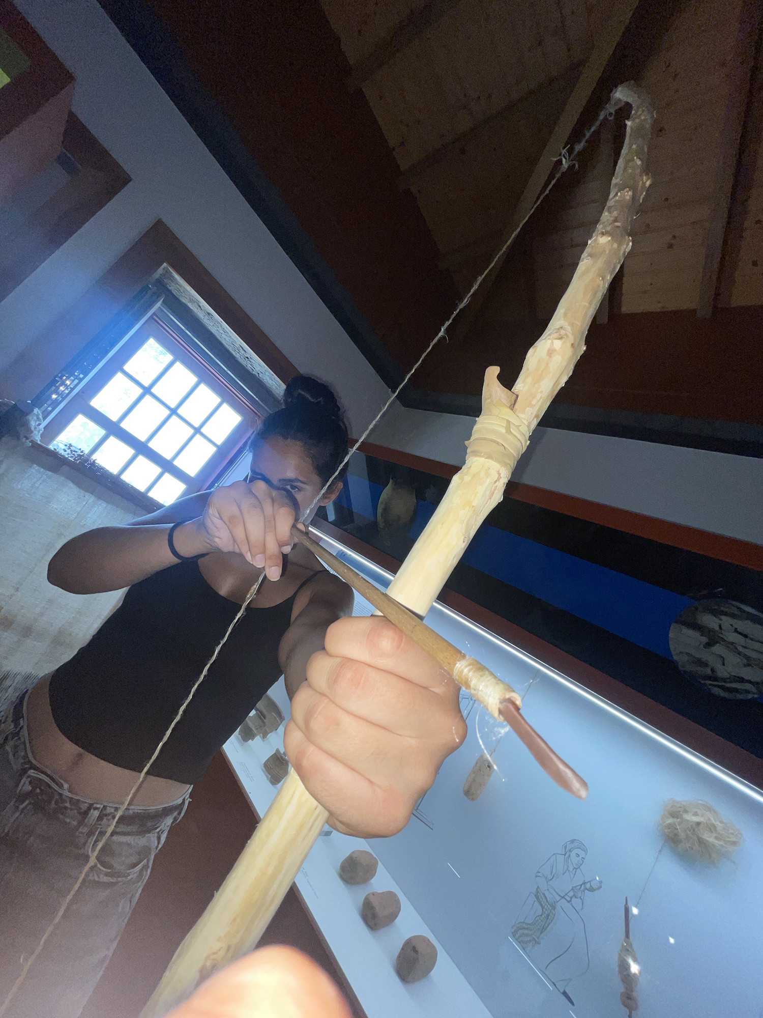 Trying on the replica of a Roman soldier’s helmet, I immediately felt the sheer weight pressing down on my head and shoulders. It was heavier than I expected, and it made me reflect on the strength and endurance Roman soldiers must have needed to march long distances in battle gear. Holding the bow and arrow was another revelation; pulling the string back required surprising force, and aiming with precision proved far from easy. These small physical challenges helped us empathise with the resilience and discipline of ancient soldiers. They showed us how tactile interaction can reveal aspects of history that no textbook could fully convey.